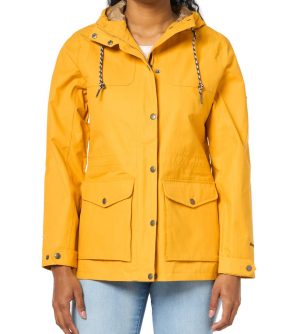 The jacket includes an adjustable hood for extra protection against wind and snow. A front zipper with a storm flap effectively blocks out cold air. The sleeves have adjustable Velcro cuffs to prevent snow and moisture from seeping in.