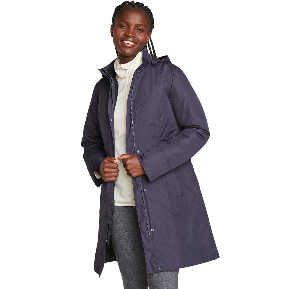 Featuring a clean, collarless design and a front snap-button closure, this trench coat provides effortless sophistication without excess bulk. Its streamlined silhouette complements a variety of outfits, from casual to business casual.